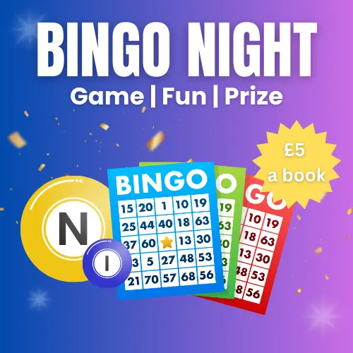 Eyes down at 8pm sharp, so don’t be late and don’t miss your chance to shout ‘BINGO!’ and win some great prizes!